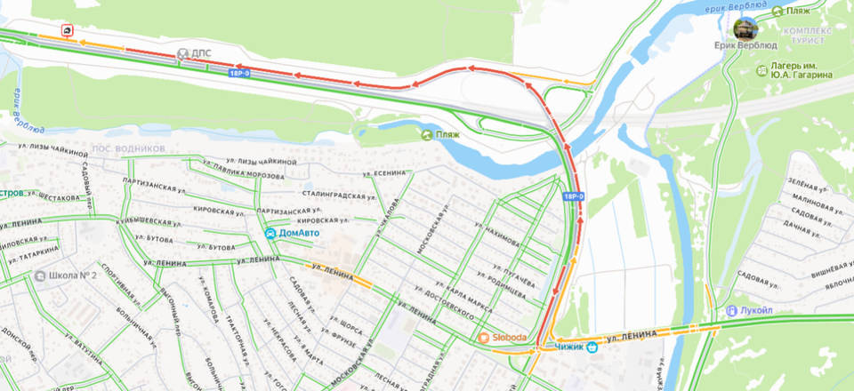 Судя по картам, пробка начинается еще в Краснослободске. Согласно данным сервиса «Яндекс Карты», затор образовался из-за ДТП на мосту.
