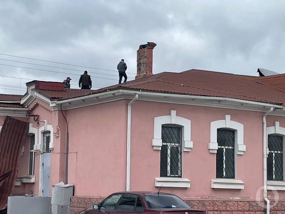 Видно, что на объекте уже работают. Несколько людей находятся на крыше и пытаются восстановить кровлю.
