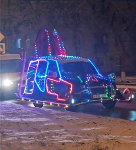 Под удивленные взгляды прохожих, украшенные гирляндами «сани», проезжали по улицам города под звуки новогодних мелодий.