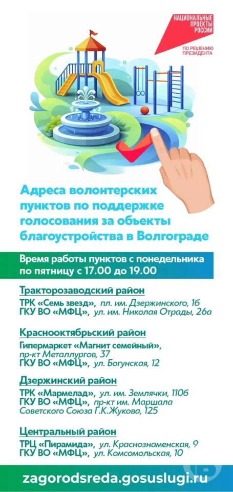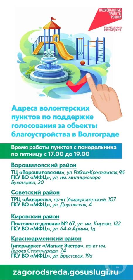 Где в Волгограде находятся волонтерские пункты по голосованию за объекты благоустройства