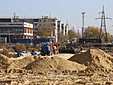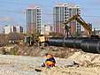 При строительстве объекта используется много современной техники. Например, бульдозеры, в которых установлены трехмерные планировщики, позволяющие автоматически выходить на планируемый уровень высотной отметки земли.