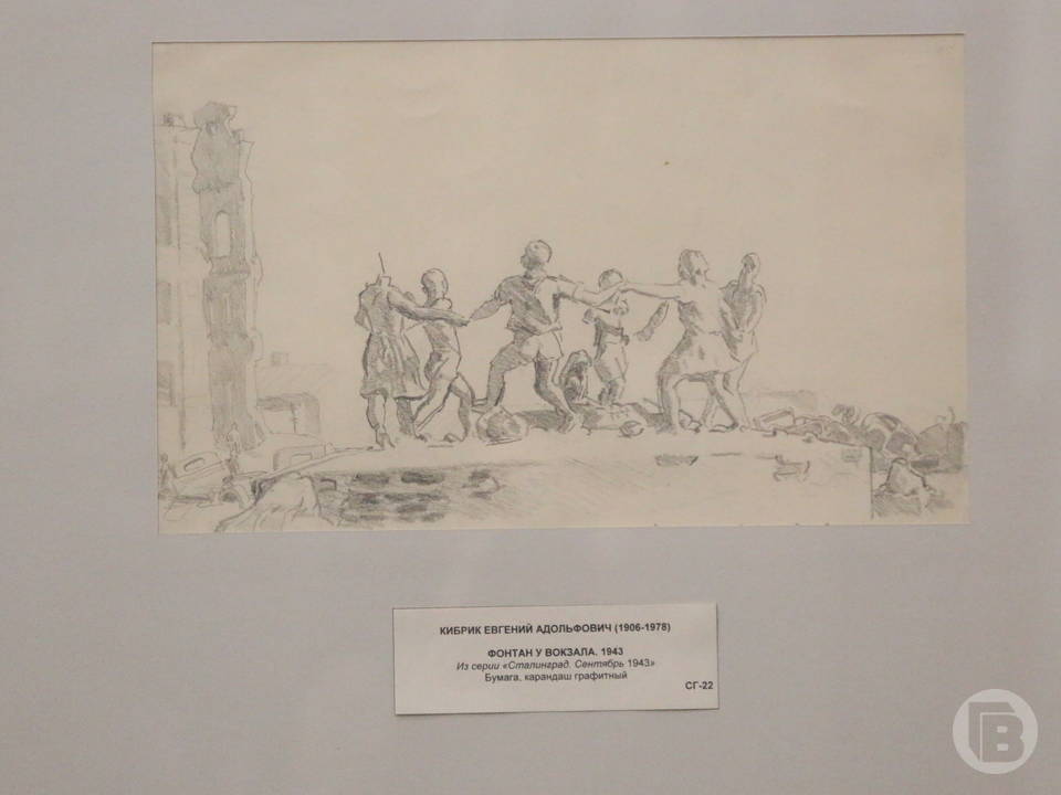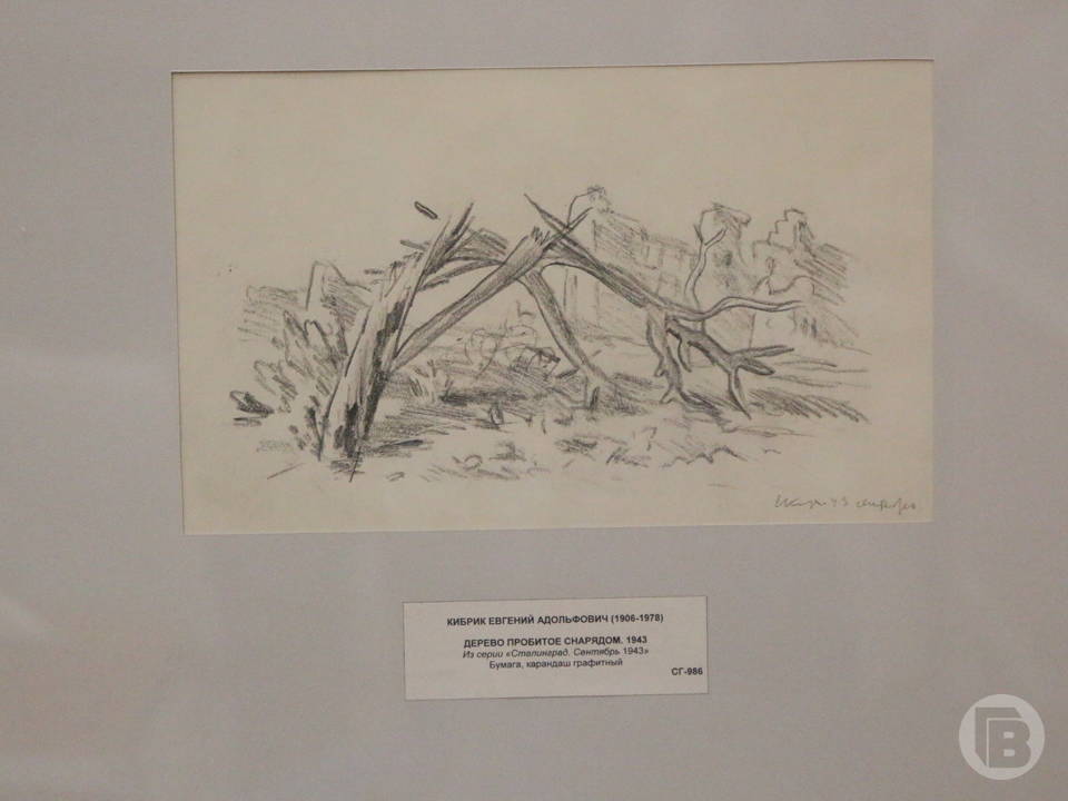 А вот что писал Кибрик об увиденном: «Временами, стараясь отвлечься от угнетающих душу сюжетов гибели и разрушения, я рисую Волгу, сверкающую под солнцем, ритм ее волн, бегущих от рыбацкого баркаса, и снова рисую – на этот раз торчащую из земли скрюченную руку плохо засыпанного фашиста... Всё рисую».