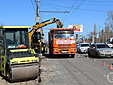 Рабочие уже сняли старый асфальт. Спецтехнику выводят в вечернее и ночное время, чтобы минимизировать пробки. Представители подрядной организации снимают бордюры и устанавливают на его место новый бортовой камень.