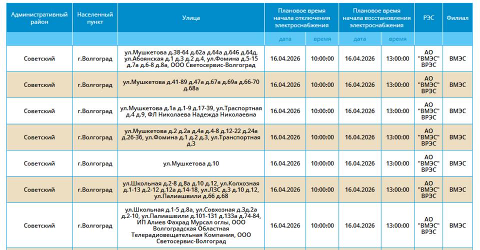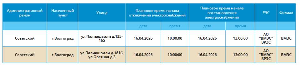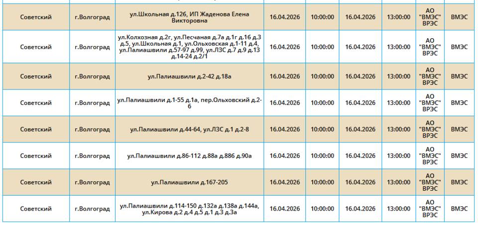 В четверг, 16 апреля, временно обесточат некоторые дома в Советском районе Волгограда.