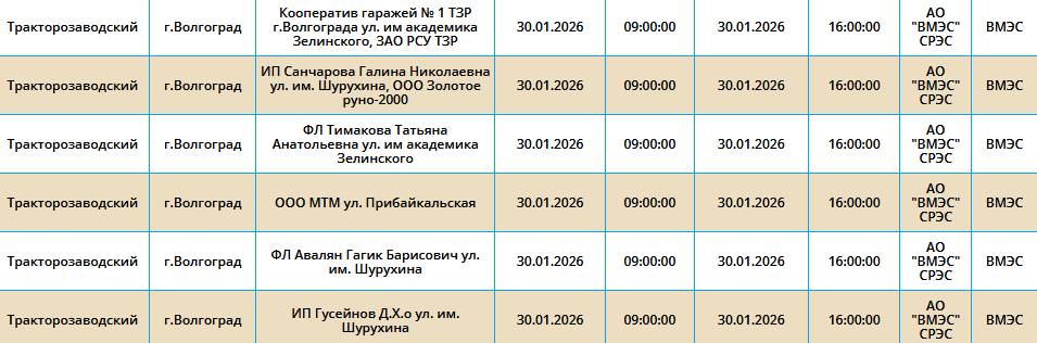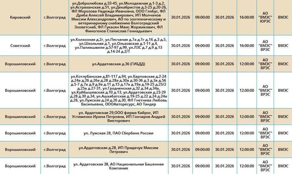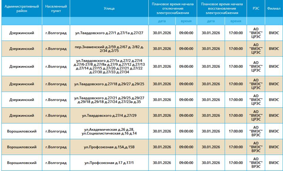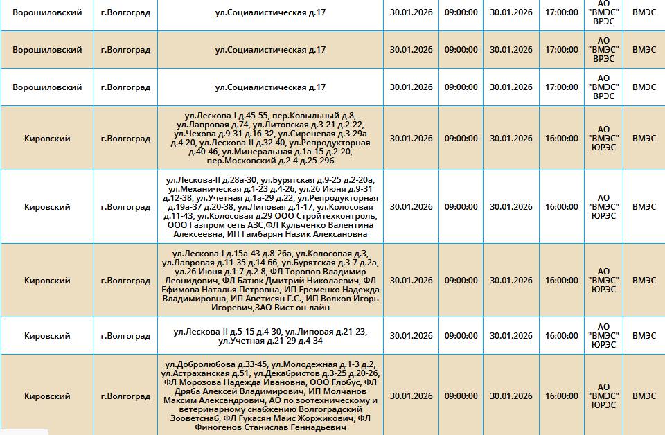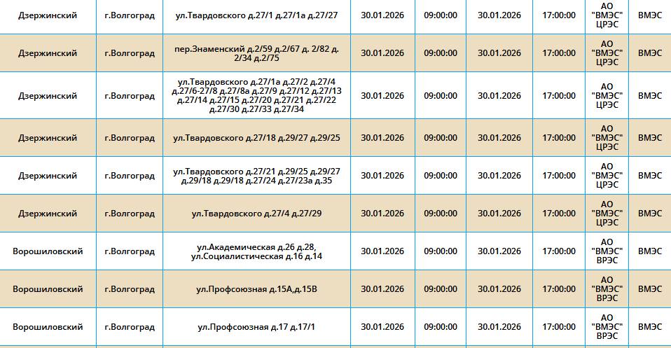 В пятницу, 30 января, без света несколько часов проведут жители пяти районов Волгограда.