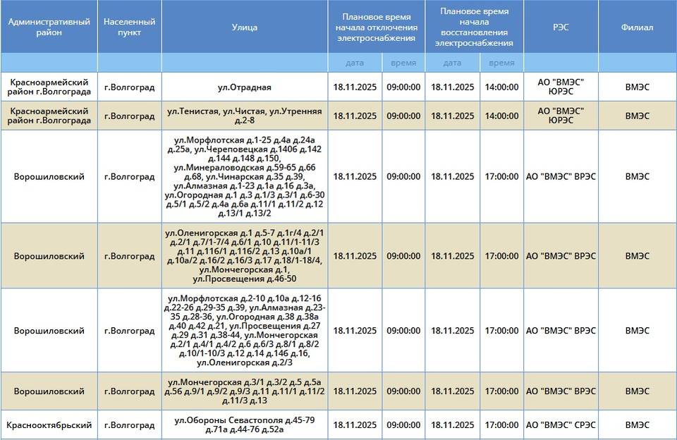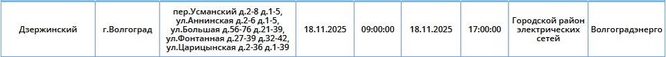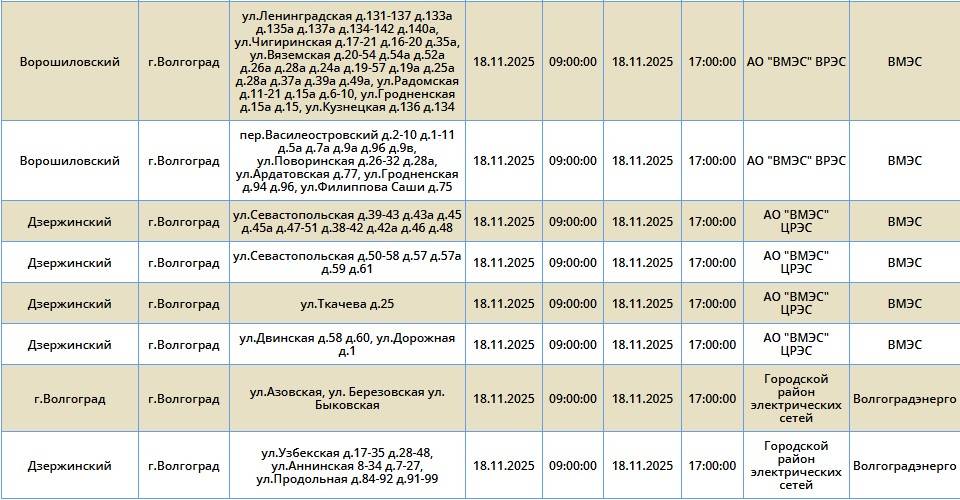 Во вторник, 18 ноября, электроэнергию отключат в четырех районах Волгограда. Света не будет в Красноармейском, Ворошиловском, Краснооктябрьском и Дзержинском районах. Об этом сообщает компания «Россети Юг».