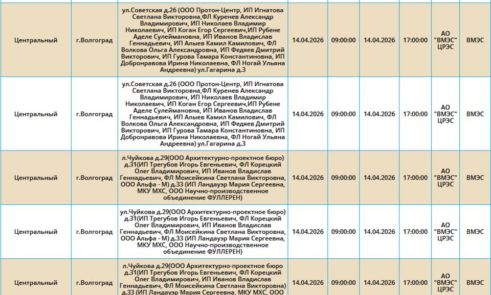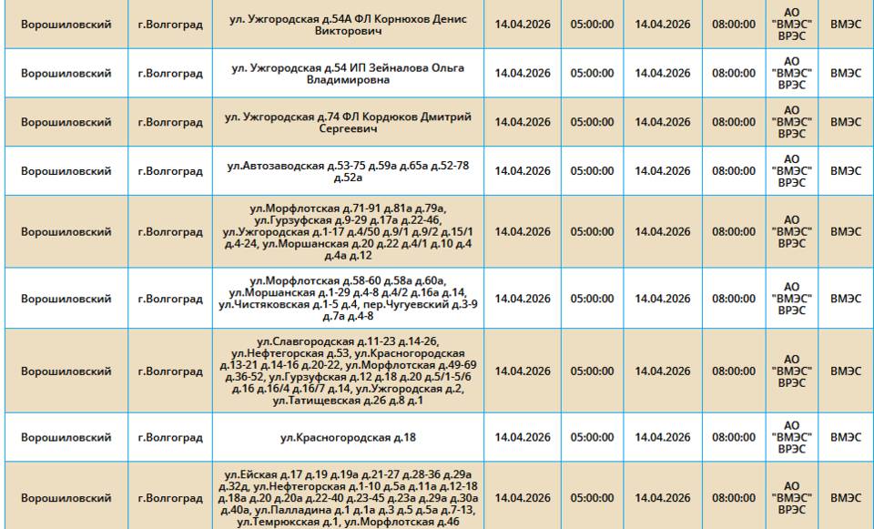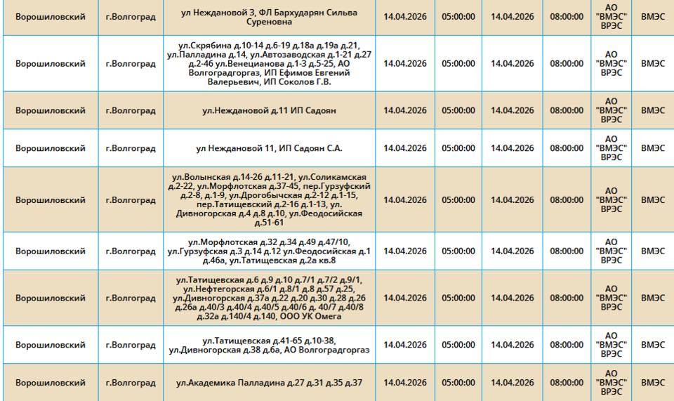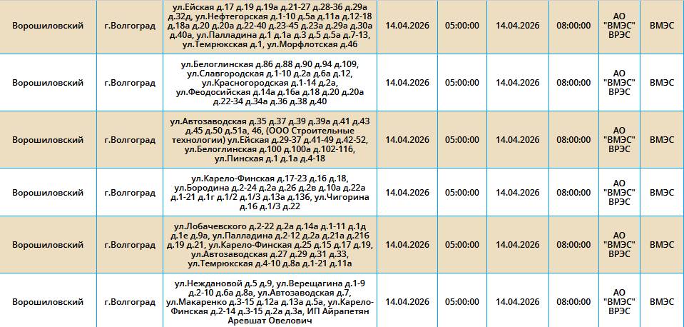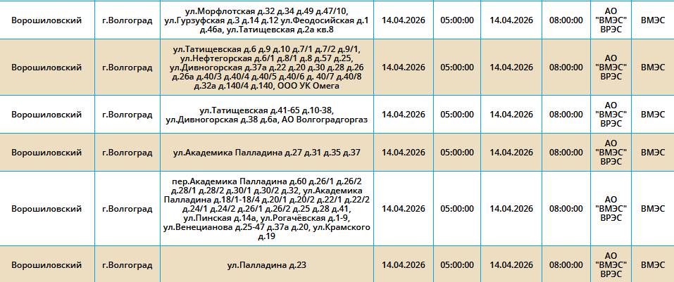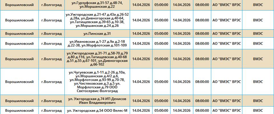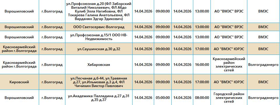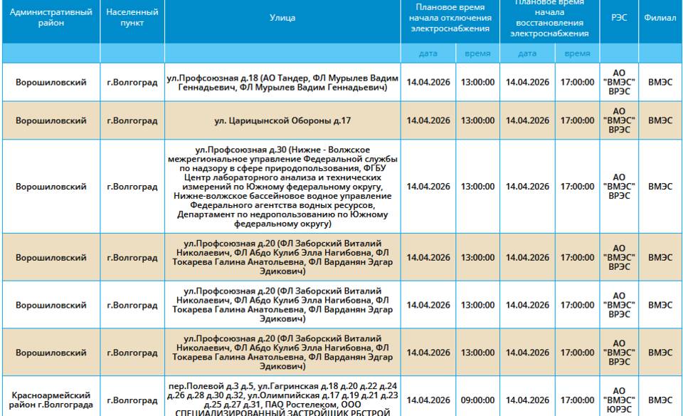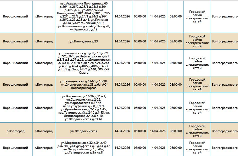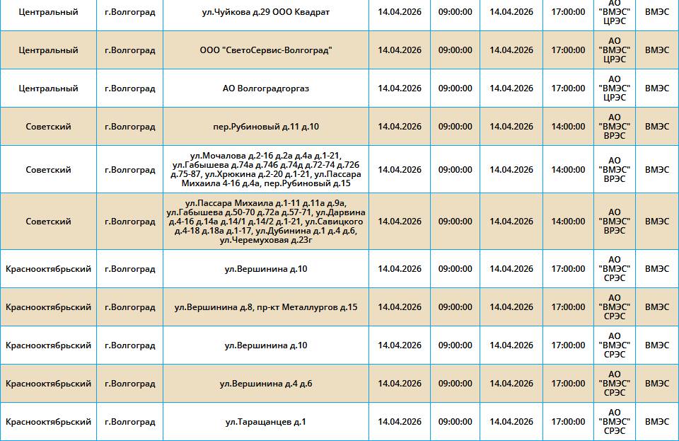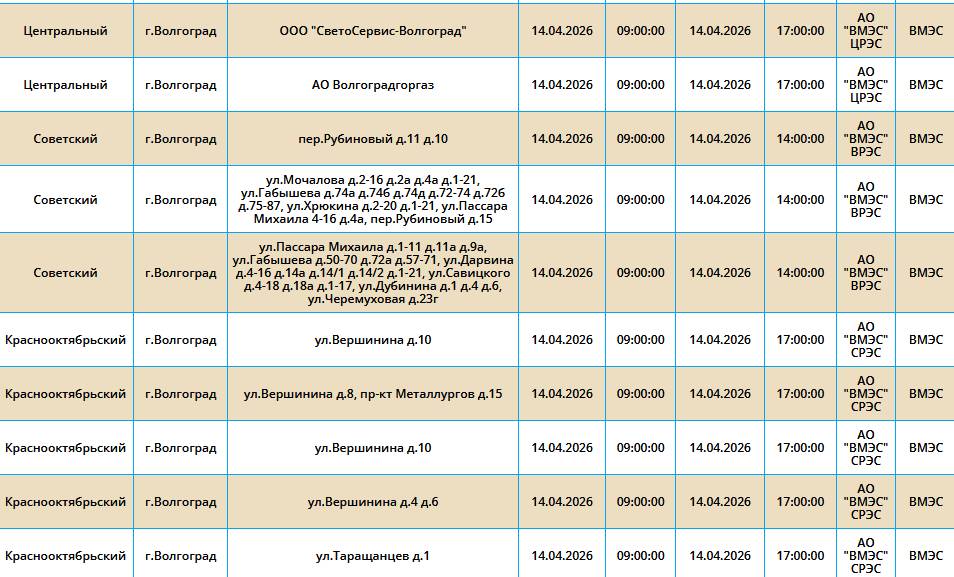 Во вторник, 14 марта, в пяти районах Волгограда у жителей на несколько часов отключат свет.