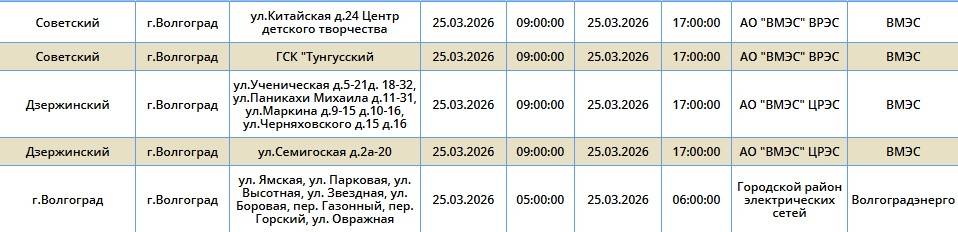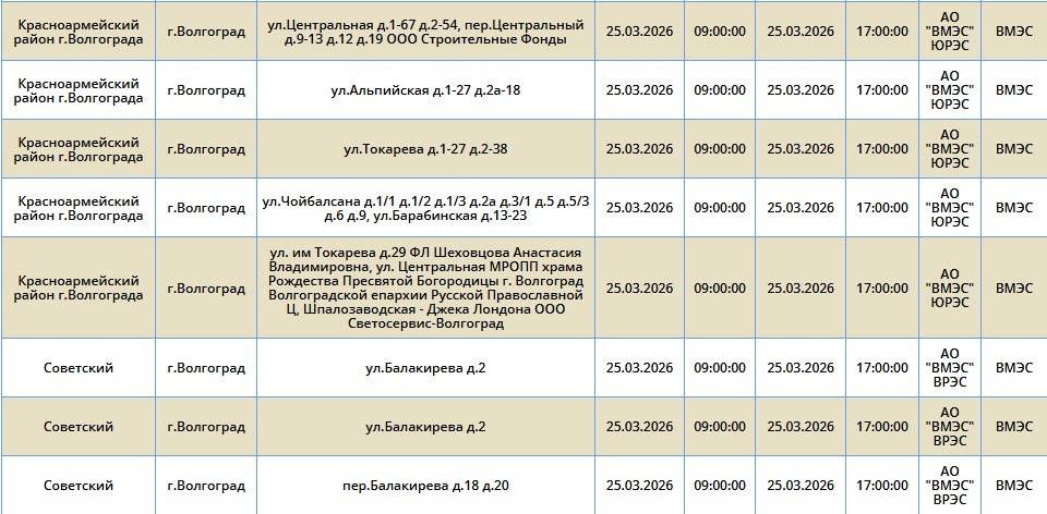 В среду, 25 марта, будет приостановлено электроснабжение пяти районов Волгограда. Света не будет в Краснооктябрьском, Тракторозаводском, Красноармейском, Советском и Дзержинском районах. Об этом сообщает компания «Россети Юг».
