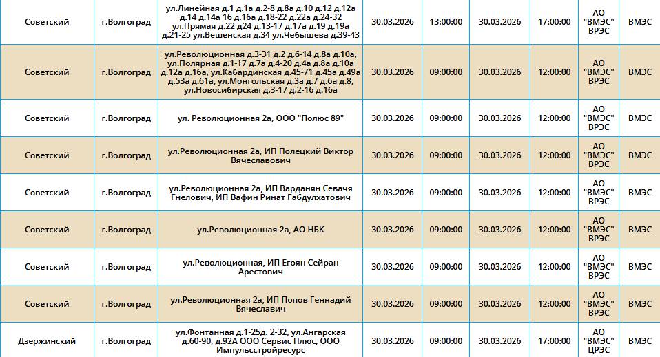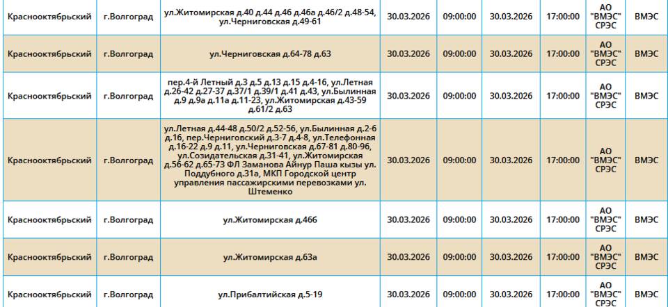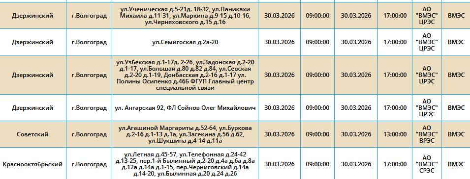 В понедельник, 30 марта 2026 года, света не будет в трех районах Волгограда.