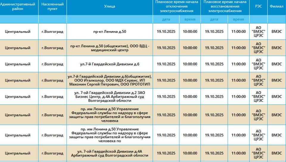 Сегодня, 19 октября, света не будет несколько часов в трех районах Волгограда.