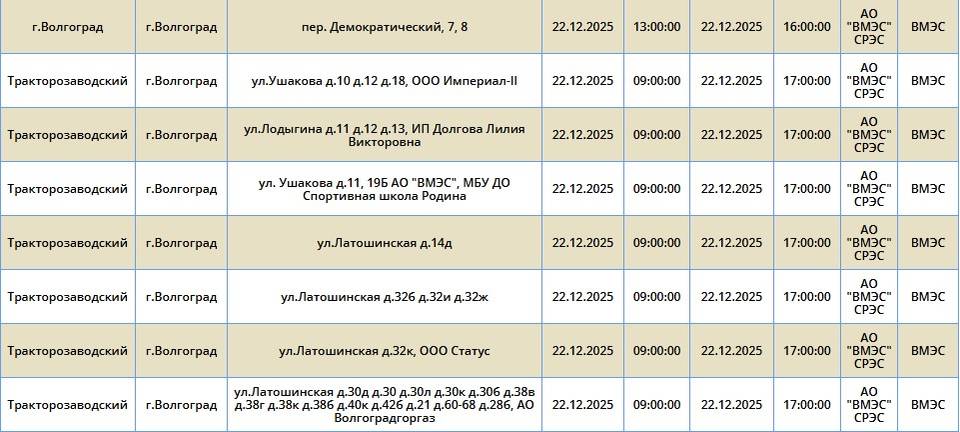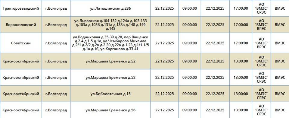 В понедельник, 22 декабря, отключение электроэнергии ожидается в четырех районах Волгограда. Света не будет в Краснооктябрьском, Тракторозаводском, Ворошиловском и Советском районах. Об этом сообщает компания «Россети Юг».