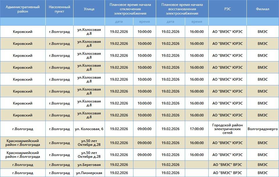 В четверг, 19 февраля, электроэнергию отключат в двух районах Волгограда. Света не будет в Кировском и Красноармейском районах. Об этом сообщает компания "Россети Юг".