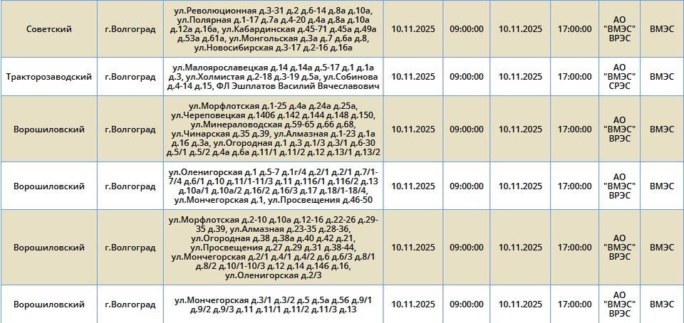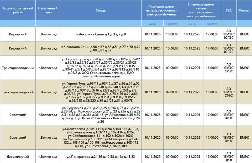 В понедельник, 10 ноября, отключение электроэнергии ожидается в пяти районах Волгограда. Света не будет в Кировском, Тракторозаводском, Советском, Дзержинском и Ворошиловском районах города. Об этом сообщает компания «Россети Юг».