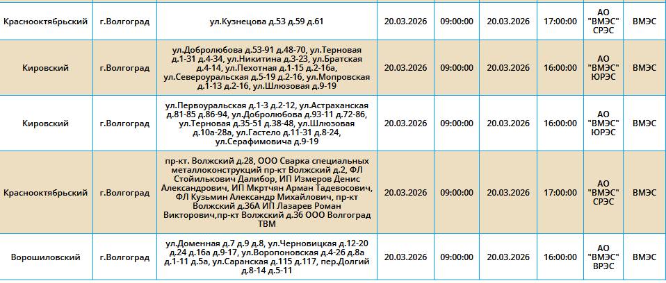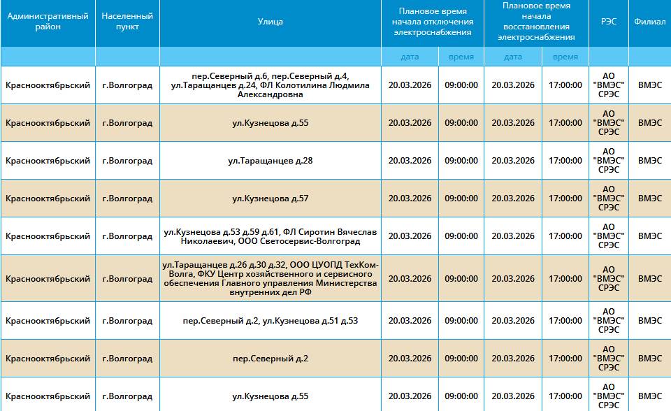 В пятницу, 20 сентября, три района Волгограда на несколько часов лишатся подачи электричества.