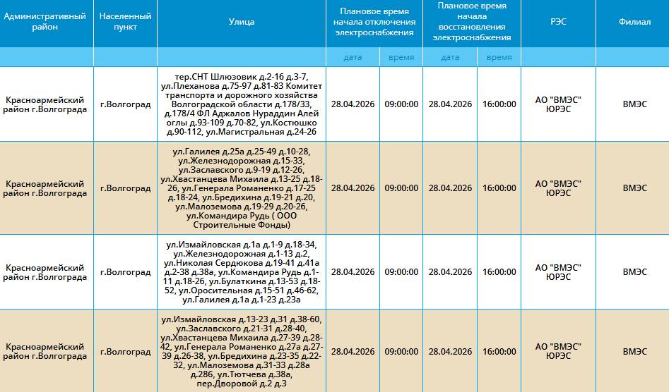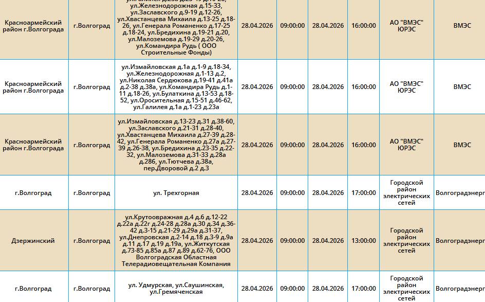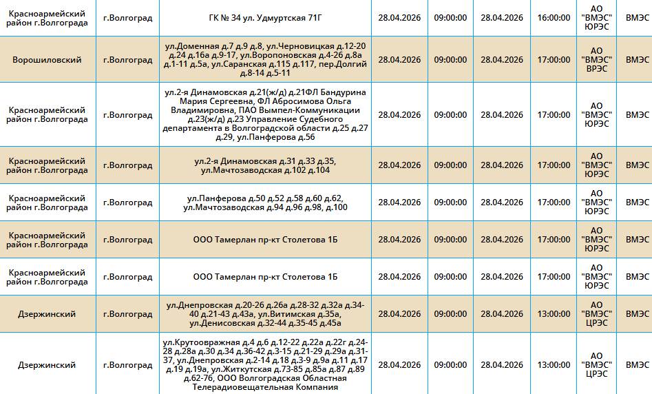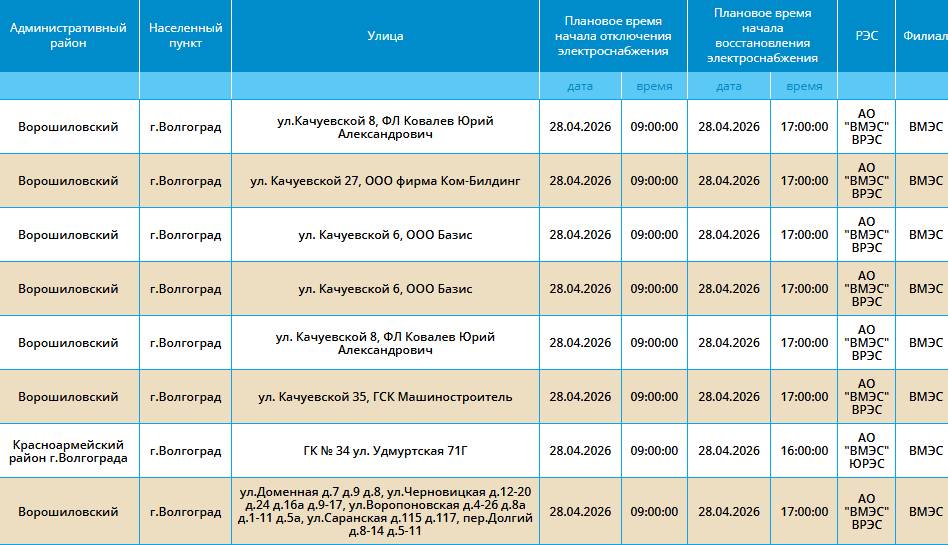 Три района Волгограда обесточат во вторник, 28 апреля, сообщается в пресс-службе компании «Россети Юг».