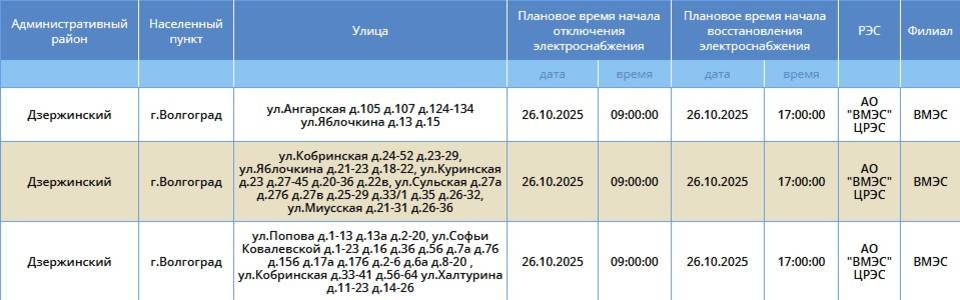 В воскресенье, 26 октября, отключения электроэнергии ожидает один район Волгограда. Свет отключат в Дзержинском районе. Об этом сообщает компания «Россети Юг».