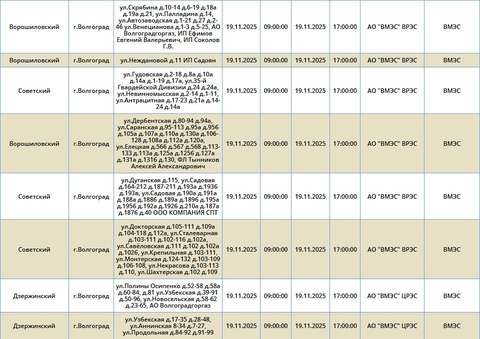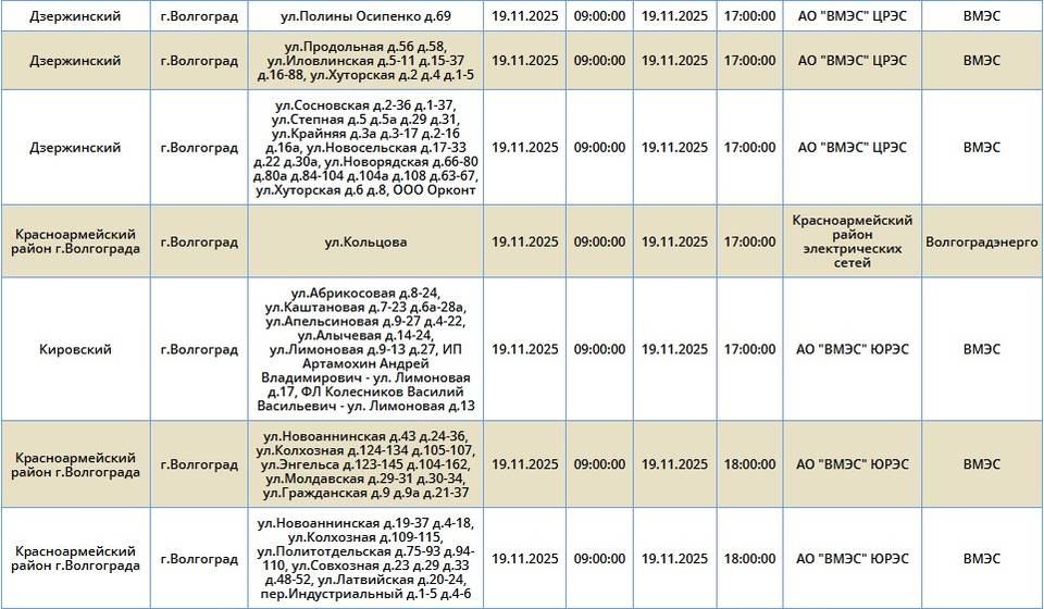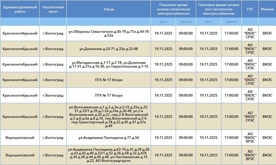 В среду, 19 ноября, отключение электроэнергии коснется шести районов Волгограда. Света не будет в Краснооктябрьском, Ворошиловском, Советском, Дзержинском, Красноармейском и Кировском районах. Об этом сообщает компания «Россети Юг».