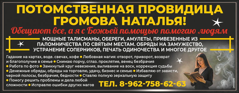 Потомственная провидица Громова Наталья! Обещают все, а я с Божьей помощью помогаю людям.