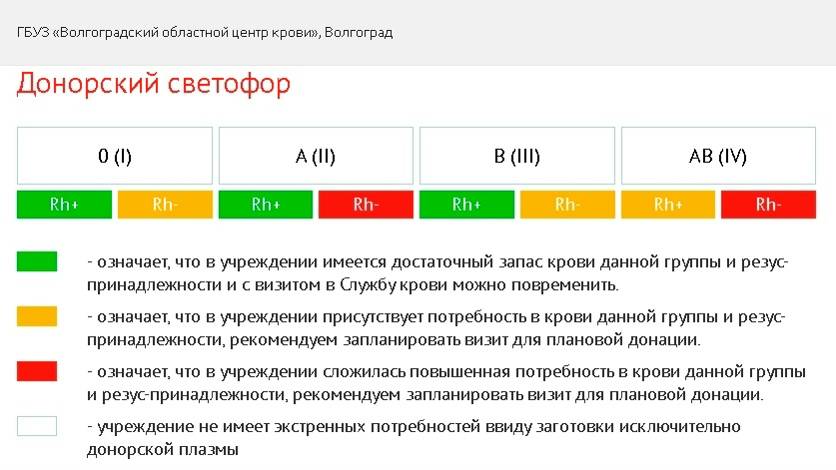 Сегодня, 20 января, Волгоградский областной центр крови опубликовал "донорский светофор".