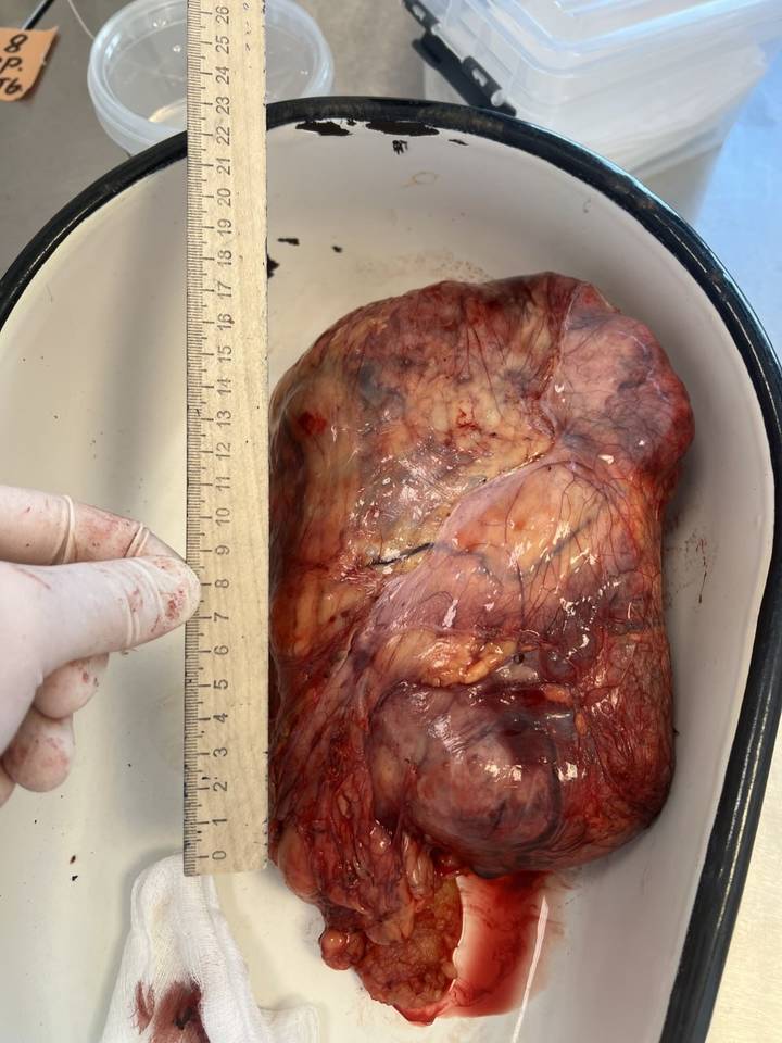 Несмотря на риски, заведующим ООХМЛ4 было принято решение провести оперативное лечение. Пациентка была госпитализирована и подготовлена к операции, которая не могла быть выполнена лапароскопически из-за большого размера опухоли. В феврале 2026 года была проведена радикальная нефрэктомия справа. Операцию проводил заведующий ООХМЛ4 (онко-урология) врач высшей категории Проноза В.В., ассистировал врач Алейников А.А. После операции все прошло без осложнений. Контрольное УЗИ ОБП показало отсутствие проблем в области операции и в брюшной полости, анализы также были в норме. Гистология подтвердила наличие светлоклеточной карциномы, но опухоль не прорастала в соседние органы, а только отдавливала, что позволило провести успешную операцию. Пациентка выписана через 8 дней после операции под наблюдение врачей.