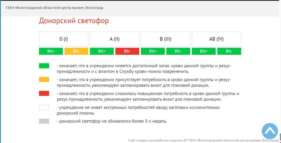 Из опубликованного "донорского светофора" видно, что медучреждение испытывает острую потребность крови второй и первой группы отрицательного резуса.