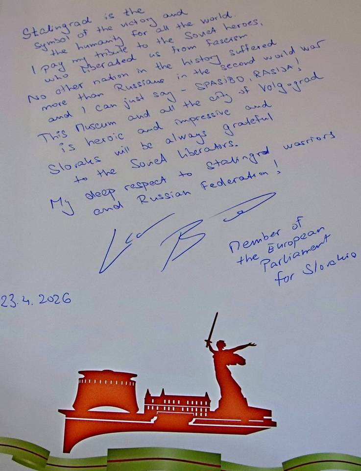 "Для всего мира Сталинград стал символом победы и гуманизма. Я отдаю дань уважения советским героям, освободившим нас от фашизма. Ни один народ в мире не пострадал во Второй мировой войне так, как русские, и я могу только сказать: Спасибо, Россия! Этот музей и весь город Волгоград очень героический и впечатляющий, и словаки всегда будут благодарны советским освободителям", отметил высокий гость.