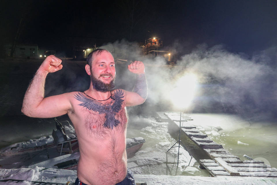Из ледяной освященной воды волгоградцы вылезали бодрые, многие улыбались и были готовы попозировать на морозе нашему фотографу.