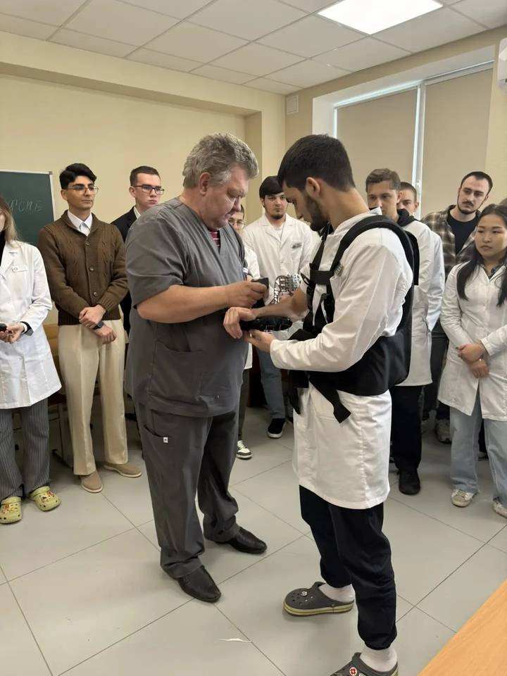 Работа с пассивным экзоскелетом верхних конечностей требует от врача особого понимания биомеханики. В ВолгГМУ студент осваивает методику непосредственно в контакте с разработчиком технологии и самим пациентом.