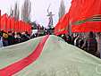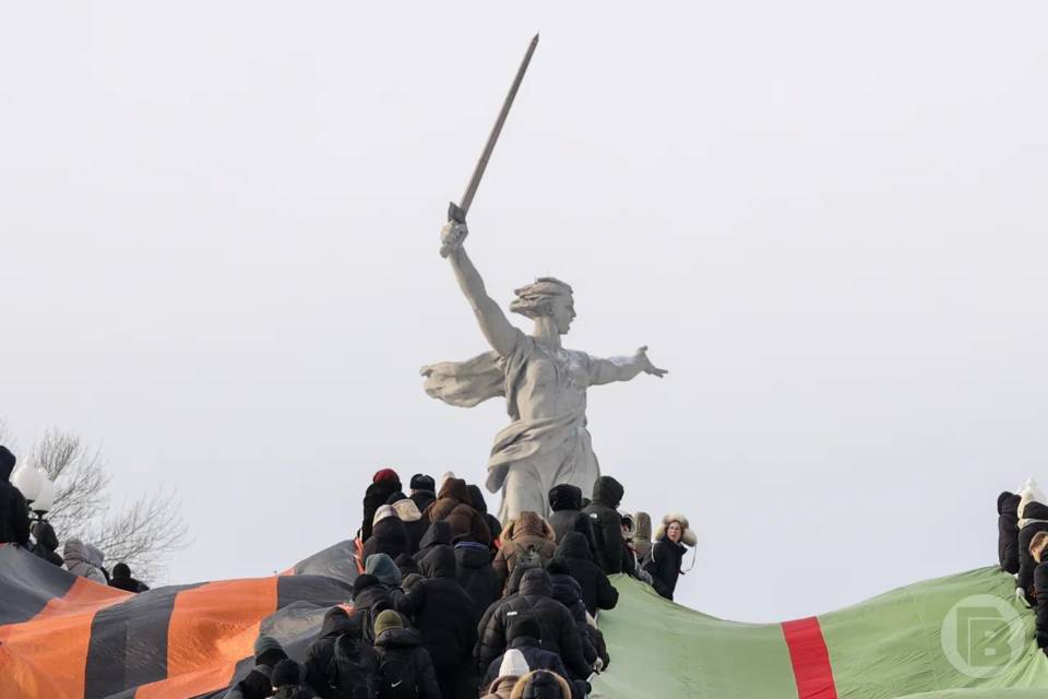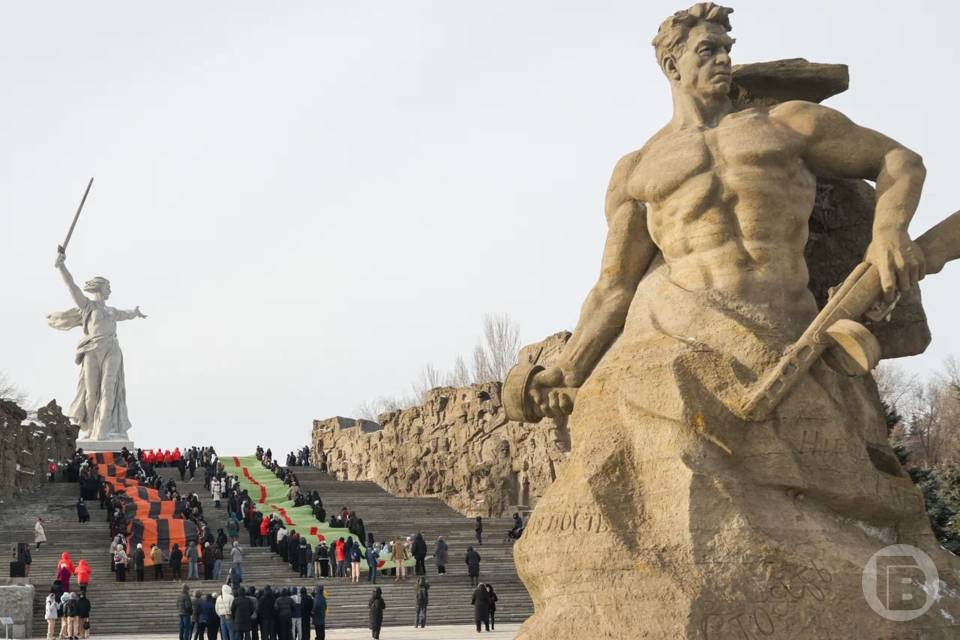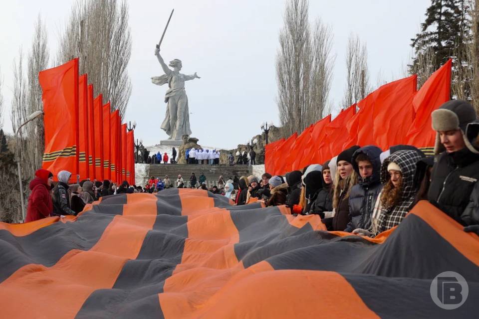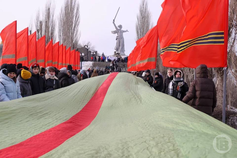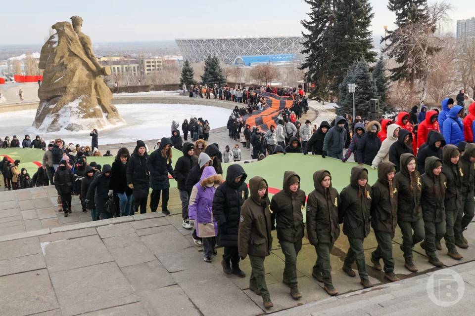 Две 80-метровые ленты — Сталинградскую и Георгиевскую — пронесли более 300 человек по Мамаеву кургану 2 февраля, сообщает пресс-служба администрации Волгограда.