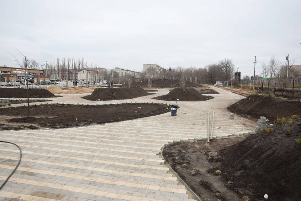 Рабочие провели подземные инженерные коммуникации, уложили плитку и специальное покрытие. В парке появились фонари, место для амфитеатра. В 2026 году здесь установят павильоны, арт-объекты и малые архитектурные формы, создадут детские и спортивные площадки. В порядок приведут и территорию, прилегающую к скверу: привокзальную площадь, остановки, пешеходные зоны.