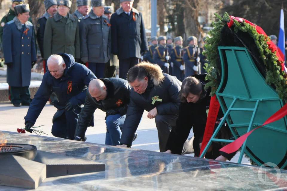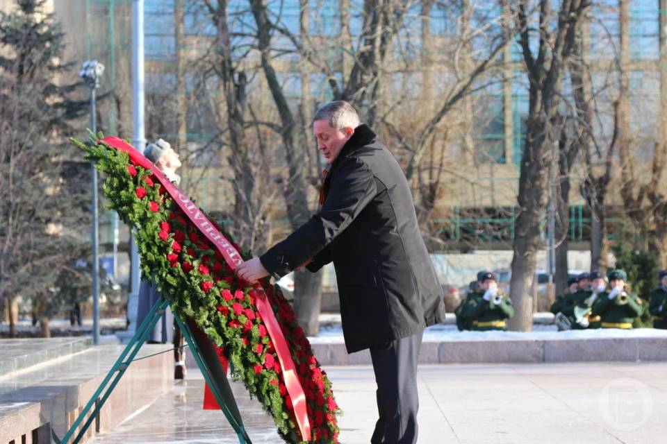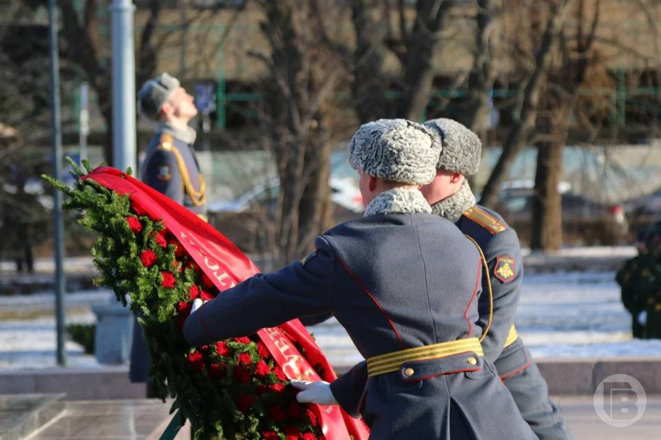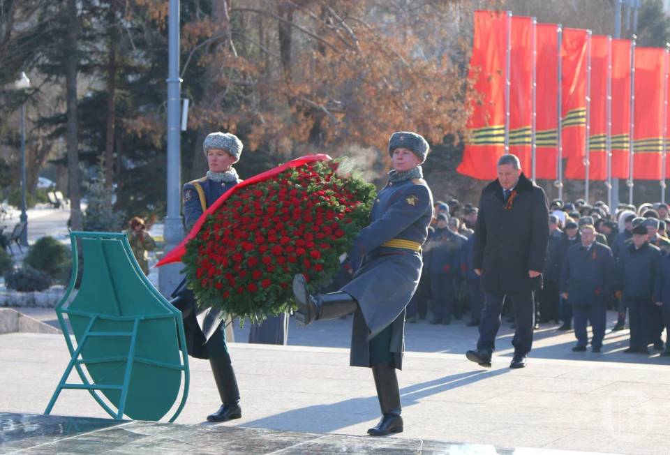 Торжества стартовали с церемонии возложения цветов к Вечному огню на братской могиле защитников Красного Царицына и воинов 62-й и 64-й Армий, павших при обороне Сталинграда.