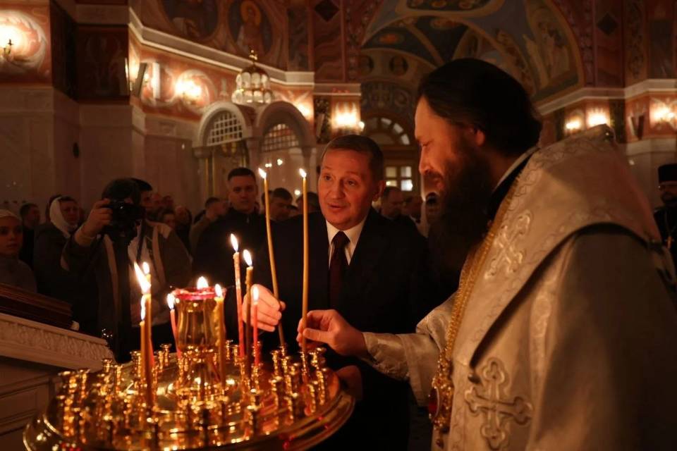 На пасхальном богослужении присутствовали губернатор Андрей Бочаров и глава Волгограда Владимир Марченко. Они помолились и поставили свечи.