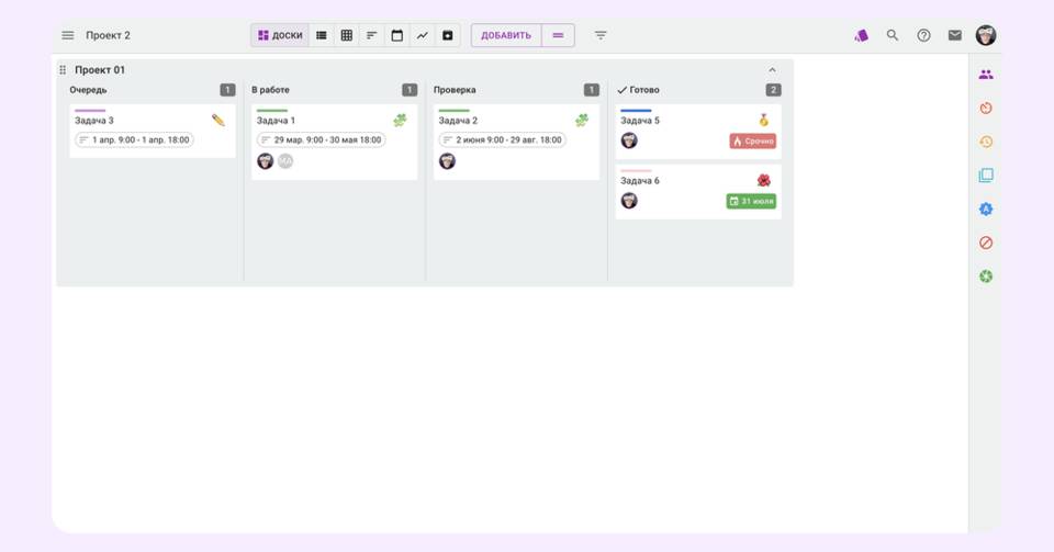 За счет этого команда видит не только сами задачи, но и текущее состояние процесса: что уже начато, что застопорилось, а что действительно доведено до результата.