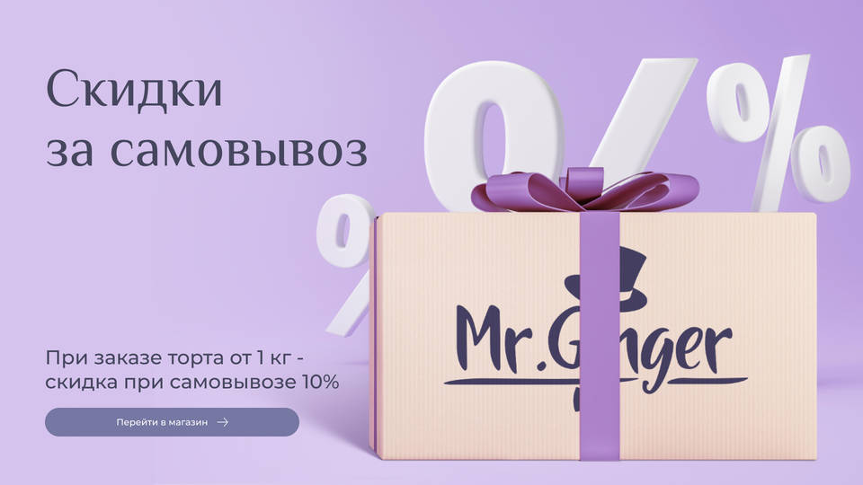 Скидка 10% за самовывоз при заказе торта от 1 кг. в кондитерской Mr. Ginger.