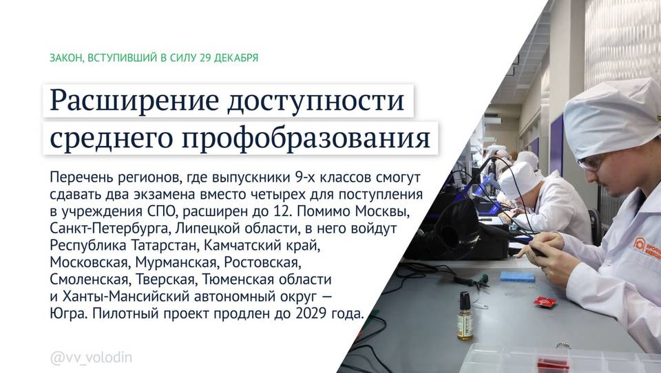 В январе 2026 года в России вступает в силу несколько новых законов. Нововведения коснутся и Волгоградской области. Об этом проинформировал Вячеслав Володин в своем telegram-канале.