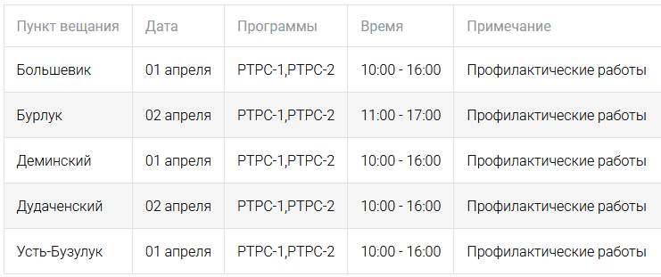 Помехи при просмотре передач ТВ и прослушивании радио могут ощущаться 1 и 2 апреля текущего года в следующих населенных пунктах: