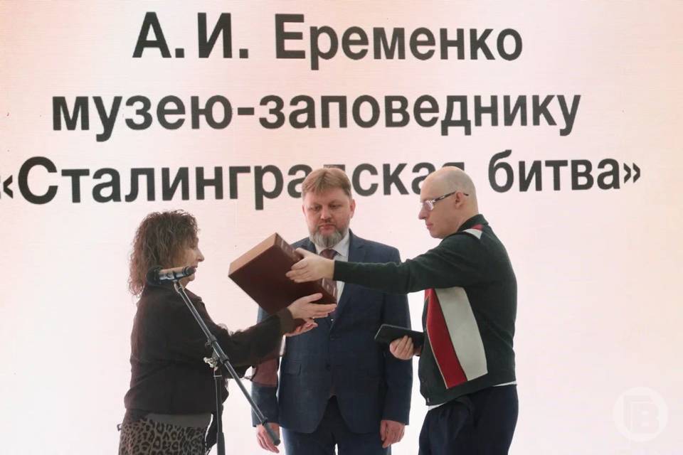 - Сегодня особенный день в нашем городе и регионе, - отметила Лариса Савина. - Сегодня Волгоград стал Сталинградом. Сегодня мы отмечаем 83-ю годовщину начала контрнаступления, с этого момента был взят курс на победу в Сталинграде, что стало переломным моментом в Великой Отечественной войне. Мы всегда будем помнить об этом. Это событие в череде праздничных мероприятий займет особое место. Художественное или документальное слово тех, кто приближал победу, кто не щадя своей жизни, не думая о себе отставал нашу Родину, очень ценно. Даже если оно проходит через года и десятилетия оно очень важно. Это слово мы передадим нашим потомкам. И они пронесут эту память уже своим детям. Губернатор Волгоградской области Андрей Бочаров придает особое значение сохранению исторической памяти, наследию поколения победителей. Символично, что книга передается в музее-заповеднике «Сталинградская битва», где каждый экспонат – это память о битве на Волге. И теперь мы будем иметь возможность прикоснуться к художественному слову маршала Андрея Еременко, который был здесь и вместе со своими бойцами ковал Победу. Эта книга займет достойное место. И мы позаботимся, чтобы слова Андрея Еременко дошли до каждой школы, до каждого патриотического объединения Волгоградской области.