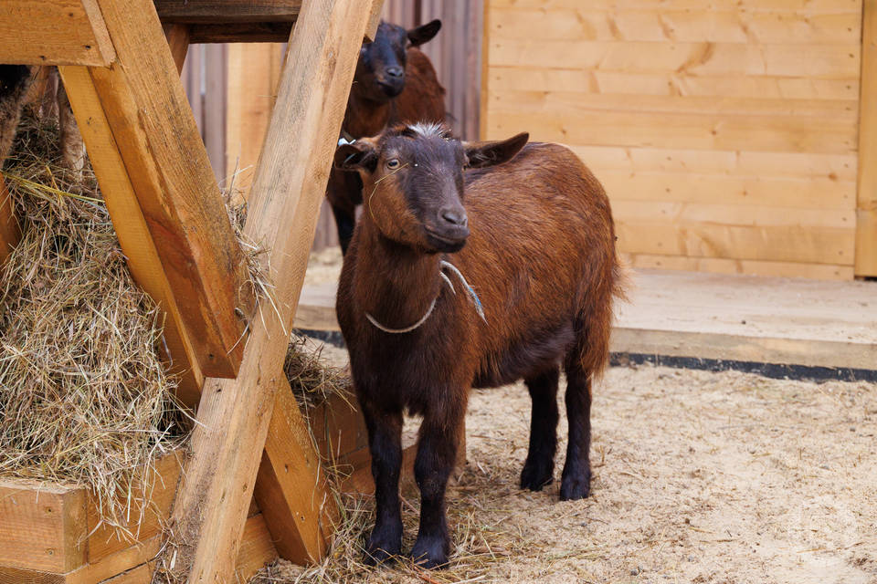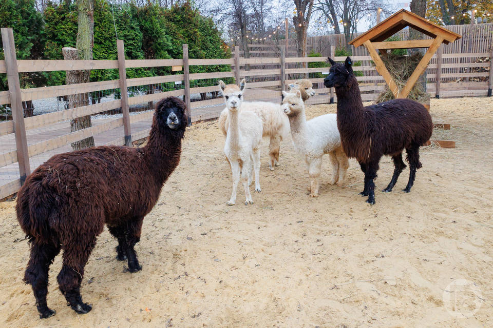 В деревне живут камерунские козы и козы Камори, семейство кроликов, альпаки и ламы. Возраст зверьков колеблется от 6 месяцев до полутора лет Гости могут покормить, погладить и пообщаться с животными. Они, кстати, очень любят людей и морковку.