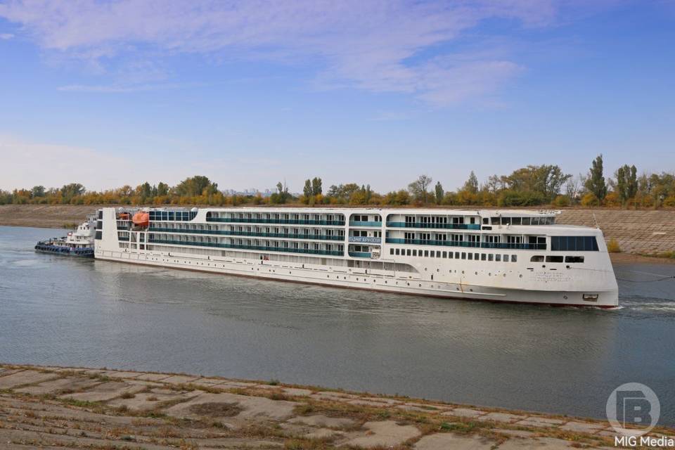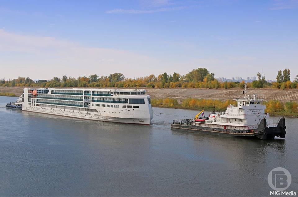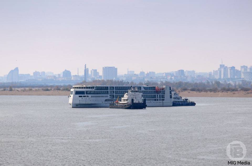 Два буксира провели мимо Волгограда будущий круизный лайнер класса люкс «Владимир Жириновский» проекта PV300VD.