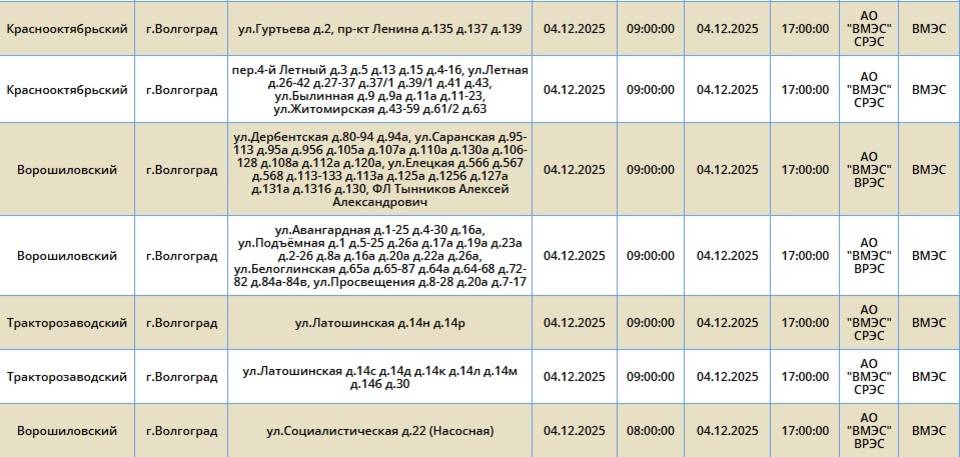 В четверг, 4 декабря, электроэнергии не будет в четырех районах Волгограда. Свет отключат в Кировском, Краснооктябрьском, Ворошиловском и Тракторозаводском районах. Об этом сообщает компания «Россети Юг».