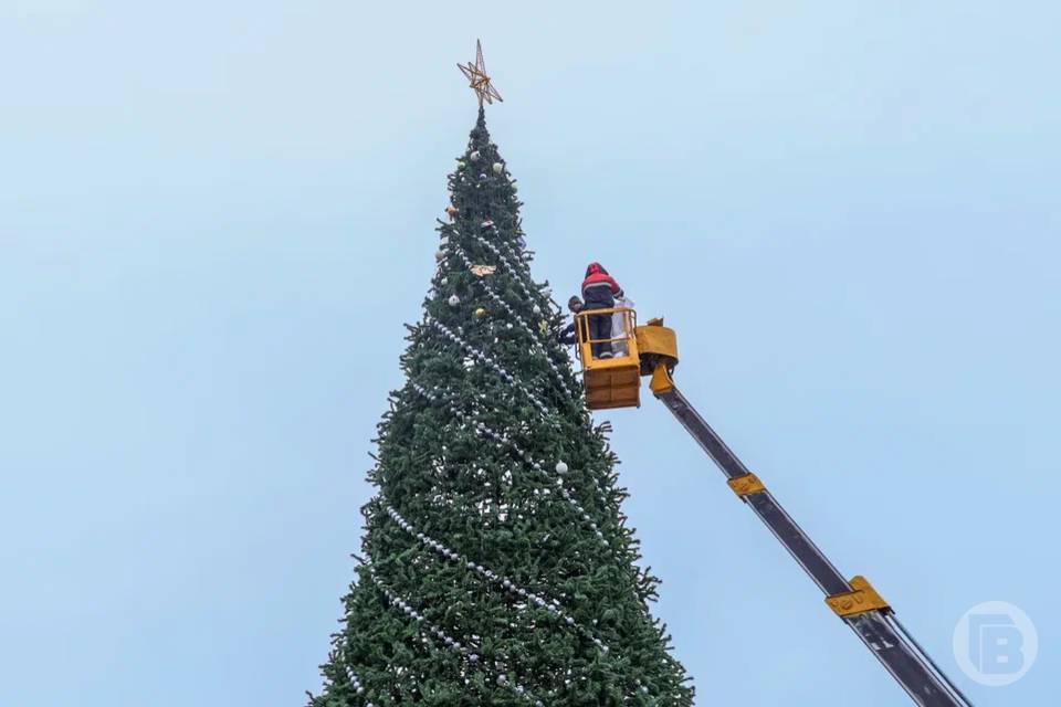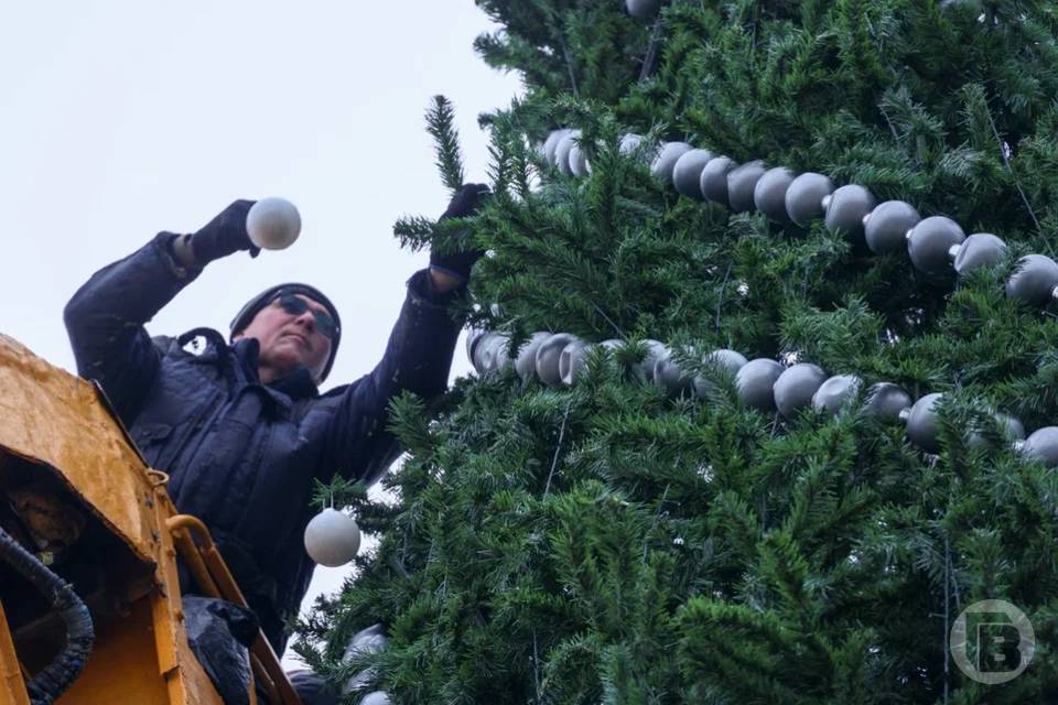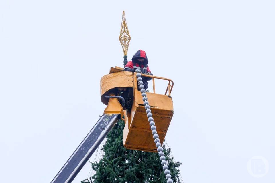 Рабочие сначала установили каркас ели, собрали больше 1600 веток-лап.