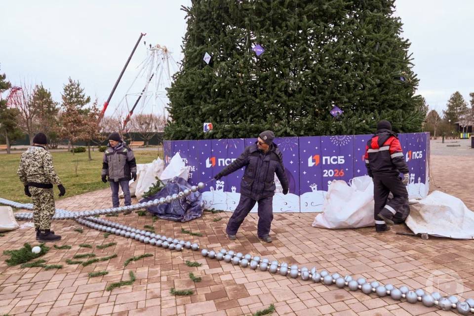 Сегодня, 18 декабря, в Центральном парке культуры и отдыха (ЦПКиО) нарядили новогоднюю елку. Чтобы зеленая красавица обрела праздничный наряд, потребовался подъемный кран. Ведь "рост" у елочки впечатляющий - целых 20 метров.