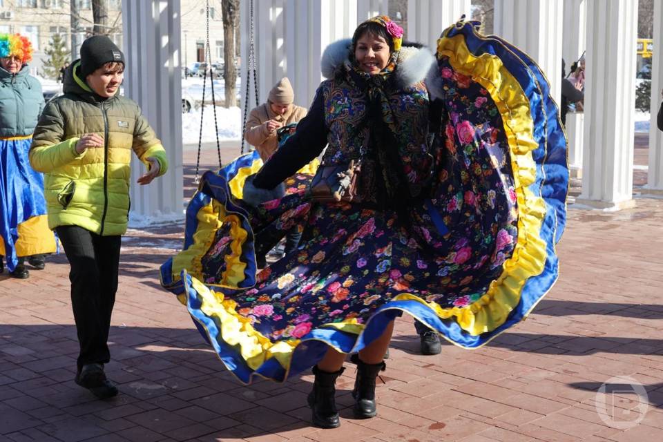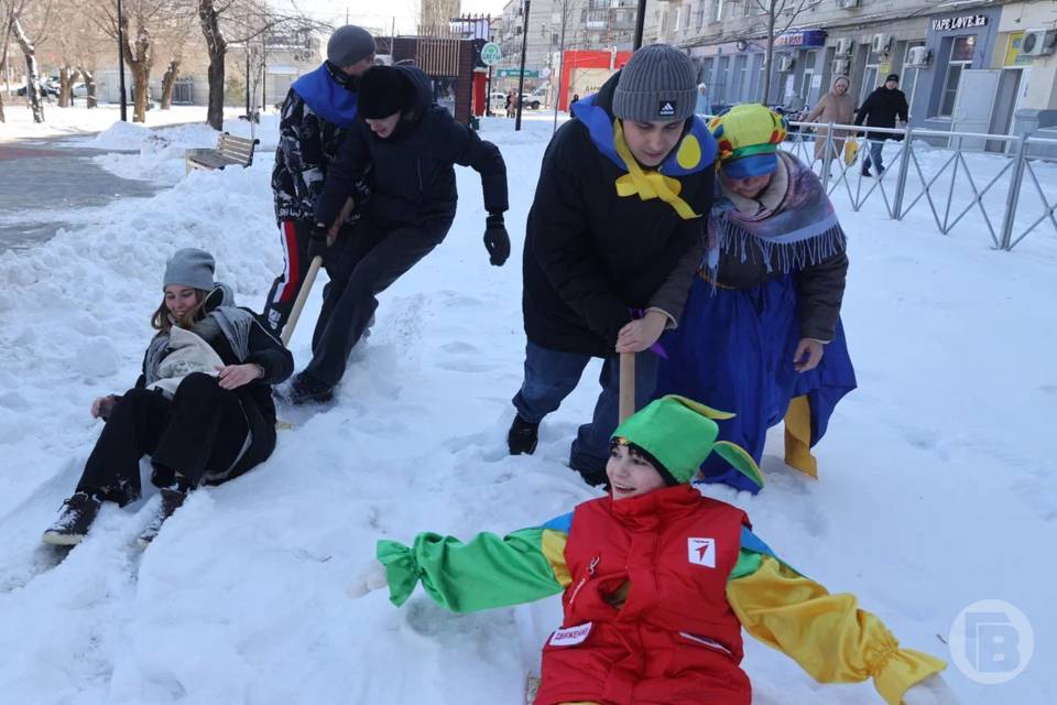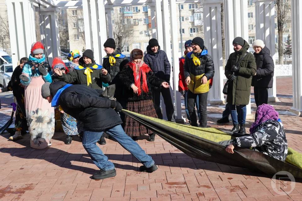 В веселом мероприятии приняли участие воспитанники подростково-молодежного клуба «Ровесник» (структурное подразделение МУ «Молодежный центр «Друзья» Волгограда»), их родители, наставники и местные жители. Ребята и взрослые нарядились в яркие масленичные костюмы.