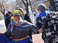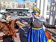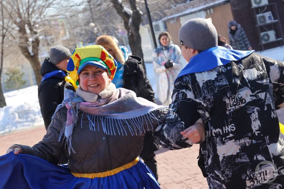 Музыкальные композиции исполняли юные таланты из Детской музыкальной школы № 8. Зрители от души повеселились над извечным спором Тещи со Свекровью, в который были вовлечены Зятья и Невестки, а также потанцевали с цыганами. Ну и, конечно, какая Масленица без угощения – в самый разгар веселья прибежал Блин-блинище, который пригласил всех отведать вкусных ароматных блинчиков с чаем. Весело было всем - и детям, и взрослым, и проходящим мимо прохожим. Праздник продолжался полтора часа завершился красивым хороводом, в котором встретились Зима и Весна.