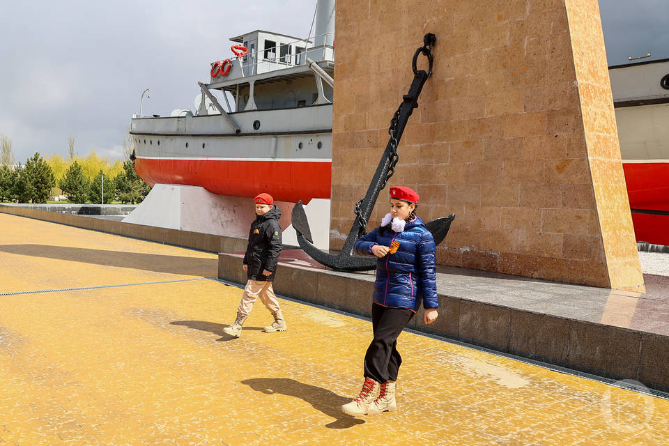 Так, юнармейцы гимназии №17 сегодня, 24 апреля, заступили в караул около парохода-памятника "Гаситель" в Ворошиловском районе.