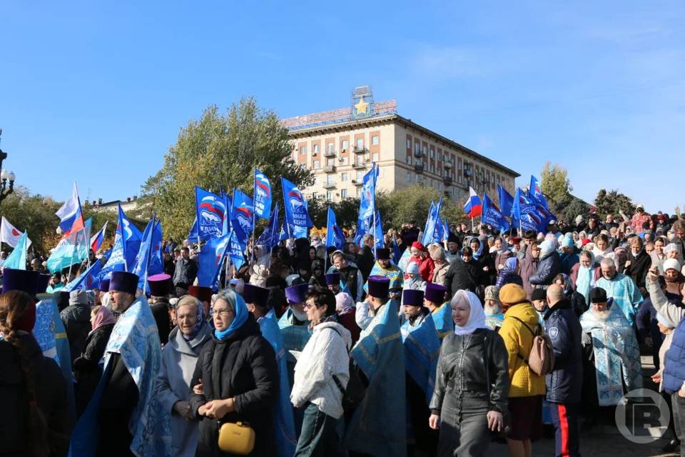 Сегодня, 4 ноября, в День народного единства, у фонтана «Искусство» на верхней террасе Центральной набережной Волгограда состоялся митинг.