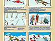 В случае провала под лед длинная палка или шест помогут вам выбраться из полыньи. Приближаясь к опасному участку на лыжах, снимите рюкзак с одного плеча, расстегните лыжные крепления, палки возьмите в одну руку. В случае необходимости вы сможете быстро освободиться от груза и лыж, а с помощью палок легче выбраться из полыньи, если вы туда угодили. Не поддавайтесь панике, почти 90% людей выбирались из подобных ситуаций.