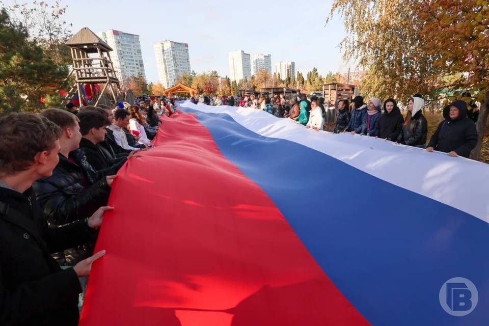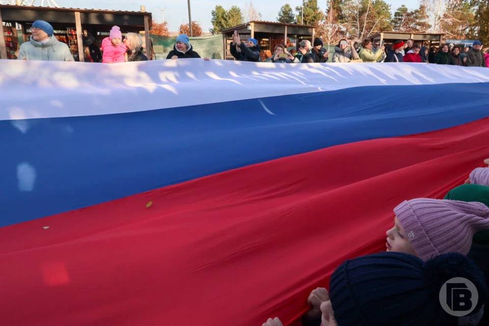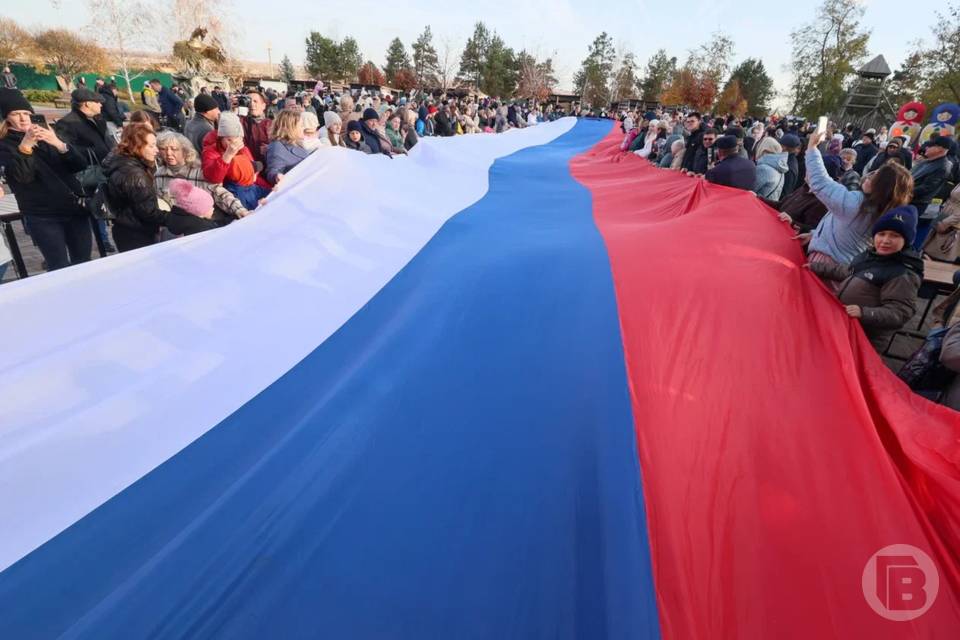 Главным событием стало развертывание 100-метрового флага России, в котором приняли участие жители города.