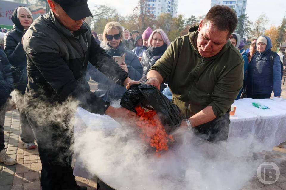 На гастрономических площадках парка можно было попробовать блюда русской кухни: пирожки с разными начинками, жареный хворост, верченое мясо на углях, котлеты и блинчики с тыквенным конфитюром. Для согрева предлагался традиционный русский напиток взвар из сухофруктов, а также дегустация сыродавленных масел. Гостей угостили 300 порциями ухи из волжской рыбы и 300 тарелками пшённой каши с тыквой, приготовленных в 200-литровых котлах на открытом огне с продуктами Волгоградской области. По словам повара Рашида Юсупова, главные ингредиенты каши — вода, соль, тыква и пшено, а в уху добавлены карпы и сазаны.