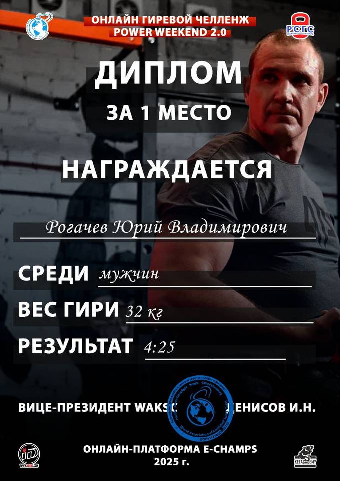 Юрий Рогачев, уроженец Волгоградской области победил в новогоднем марафоне по подъему гирь.